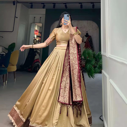 Latest Trending Golden Peach Color Lehenga With Beautiful Sequence Work Blouse Piece With Net Fabric Dupatta