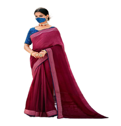Sari di pizzo di seta di lino con camicetta di dimensioni libere di abbigliamento tradizionale indiano tessuto a mano per feste