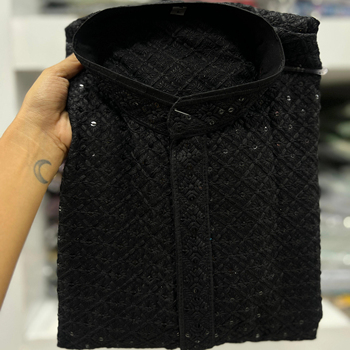 เทศกาลแบบดั้งเดิมของผู้ชายสวมเรยอน Chikan ทํางาน Kurta พร้อมชุดนอนผ้าฝ้ายโดยส่งออกในอินเดีย
