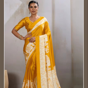 ชุดส่าหรีผ้าซาตินผ้าแพรพิมพ์ลายสำหรับงานแต่งงานและงานปาร์ตี้ดีไซน์เนอร์อินเดีย
