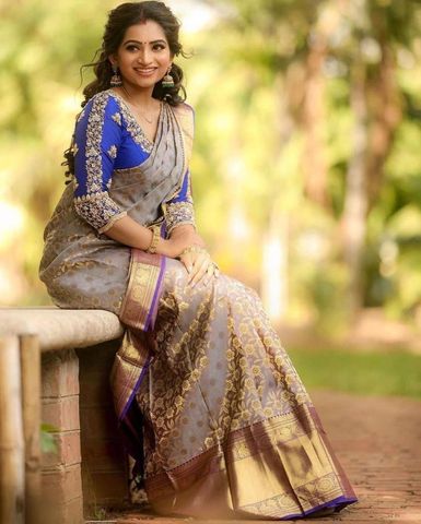 ผ้าส่าหรีผ้าไหมแบบดั้งเดิมพร้อมเสื้อไหมผ้าจอร์เจียสวยสำหรับงานแต่งงานและงานปาร์ตี้